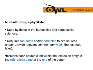 The Notes and Bibliography contains detailed explanations. Formatting your paper in APA style.